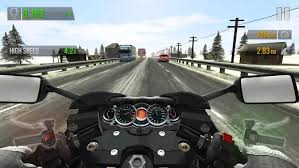 Players control their motorcycle using tilt or touch controls, steering to avoid traffic, accelerating, and braking. Overtaking cars closely at speeds over 100 km/h earns bonus points and cash, while wheelies and riding against traffic in two-way modes add extra rewards. Collisions end the run, requiring sharp reflexes and strategic timing. Cash earned can be spent on upgrading bike performance—speed, handling, and braking—or unlocking one of 34 unique motorbikes, each with distinct aesthetics and physics. Environments vary, featuring highway, desert, city, and winter settings, with day and night cycles adding visual flair.